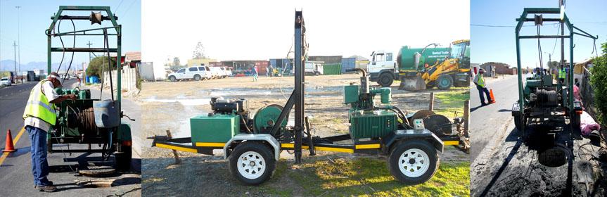 Bucket Machines are a mechanical method of cleaning storm water, sewer and box culvert drains from manhole to manhole.
